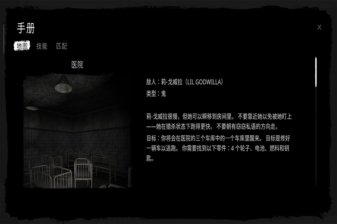 您已经在医院接受了2天的朋友的日常治疗,今天是时候可以出院了。但是发生了一些事。您在凌晨2点醒来,发现除了您和您的朋友之外,所有患者都已消失。这个地方看起来更泥泞了,而且...被锁死了!您在有关该医院的杂志上阅读后发现它出没了。现在看来,逃生的唯一方法是通过车库门。当幽灵吞噬你的灵魂时,你能逃脱吗?