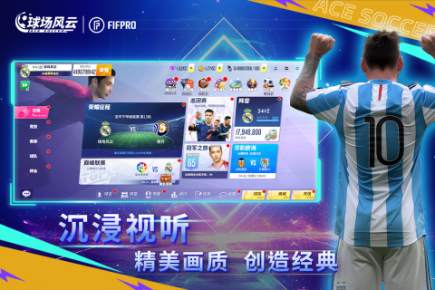 《球场风云》,是FIFPro正版授权的足球电竞手游,游戏拥有包括梅西、C罗、姆巴佩等超过6万名国际职业球员IP授权,游戏搭载深度开发的足球游戏引擎“花火”,力争为玩家打造风驰电掣的虚拟足球世界。 ◇FIFPro正版授权◇ 超过6万名真实球员姓名及肖像权,覆盖英超、西甲、意甲、法甲、荷甲等欧洲联赛大牌球星。 ◇全球排位,实时对战◇ 游戏拥有全球锦标赛排位升级玩法,在游戏中与全球玩家同场竞技